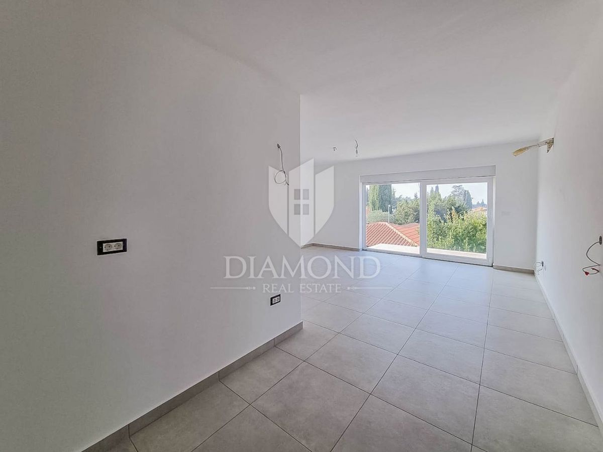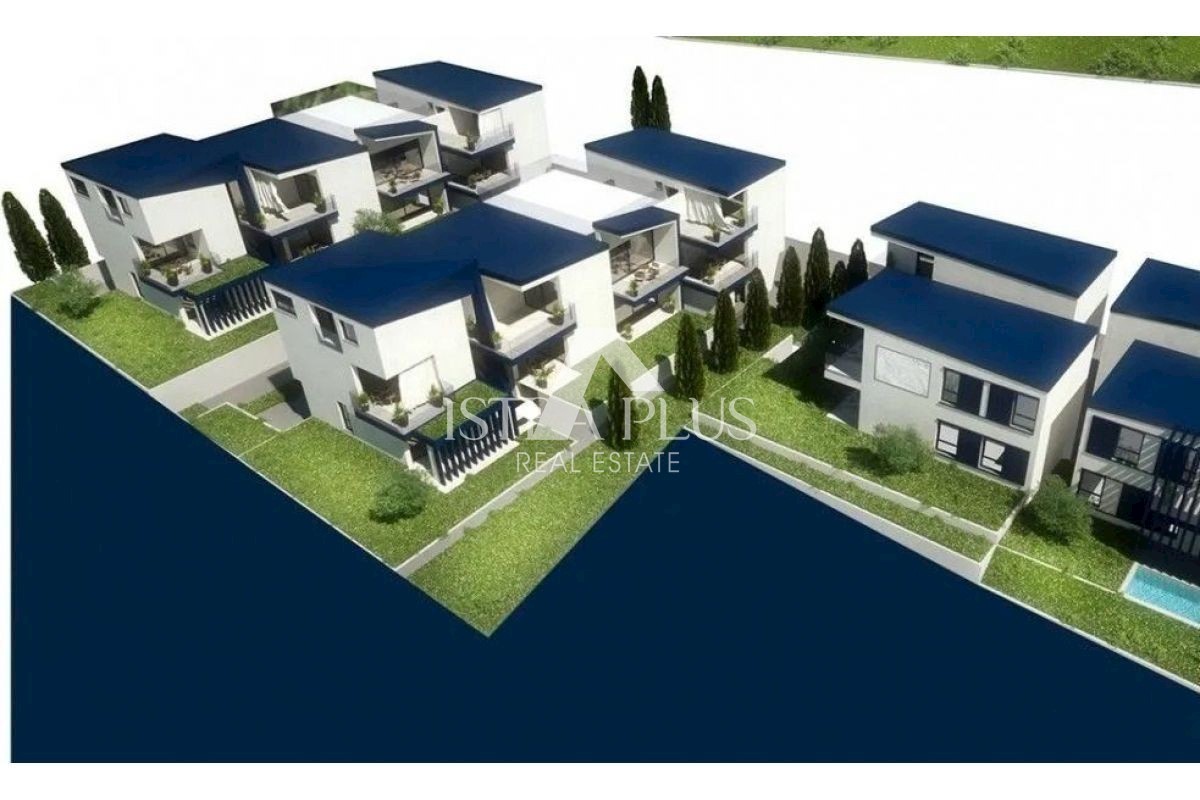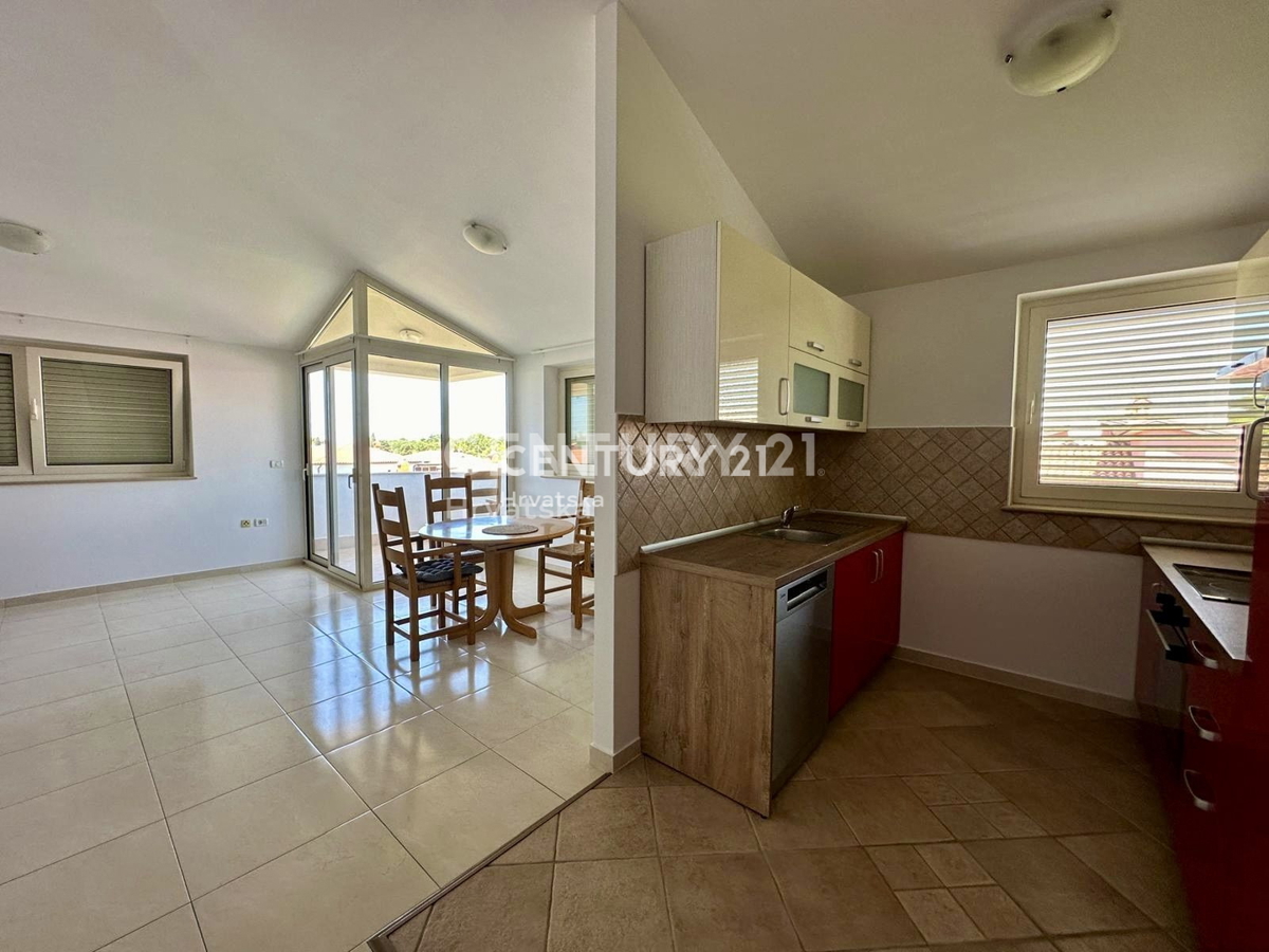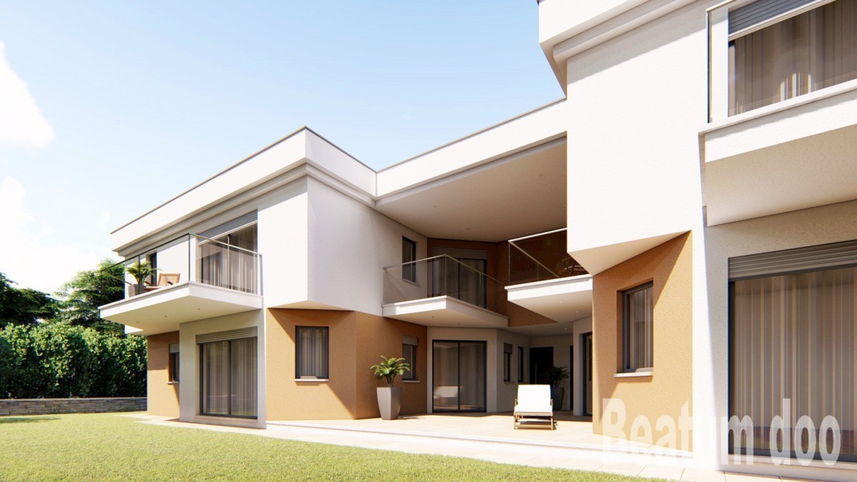 Novogradnja , dvosobni stan sa pogledom na more , garaža, ostava , balkon, terasa, prostor za bicikl , 300 m od plaže , klima , podno grijanje , prizemni stanovi imaju vrt , kvalitetni materijali , završetak 06.2023 .