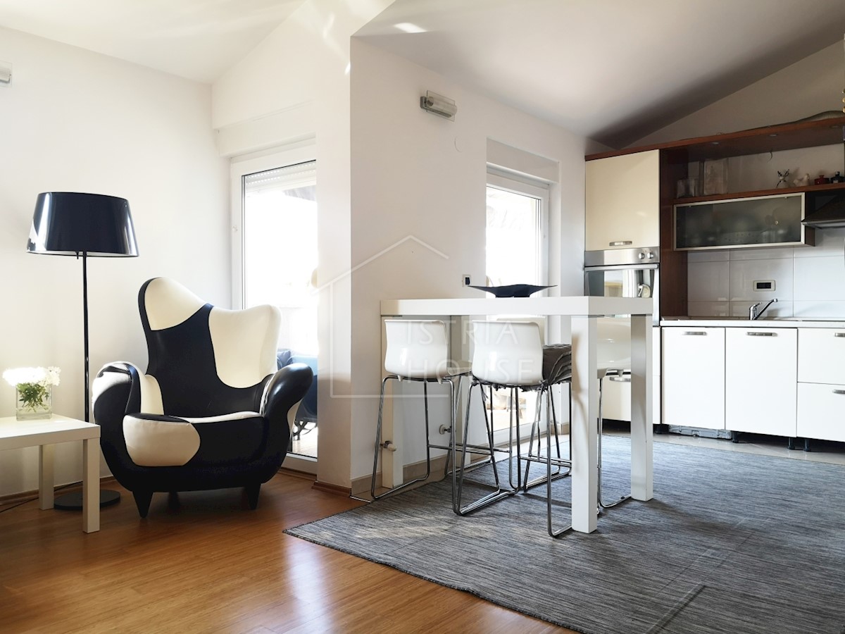 Umag, okolica, Stan na 1. katu, 300m od mora Prodaje se stan u zgradi koja se sastoji od samo četiri stana, što garantira mir i privatnost. Stan je orijentiran prema jugozapadu, što mu osigurava puno prirodne svjetlosti tijekom cije