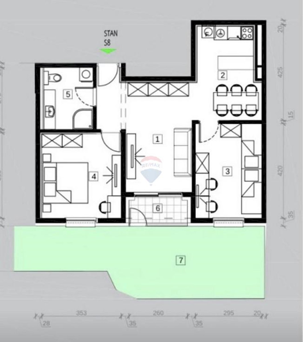 Prekrasan apartman smješten u bloku E. U bloku vila E nalazi se stan površine 49.85 m2, koji se nalazi u prizemlju bloka. Stan se sastoji od ulaznog hodnika, kuhinje, dnevnog boravka i blagovaonice s izlazom na terasu, dvije spavaće