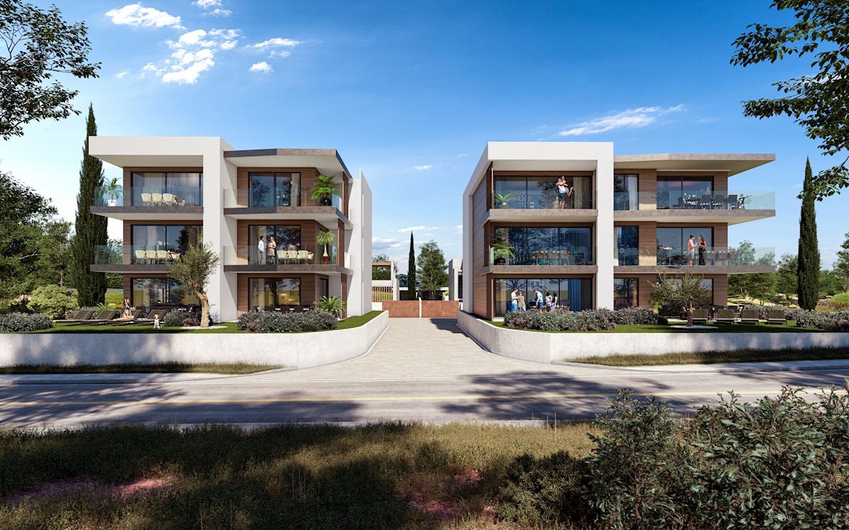 Umag-okolica S5 Prodaje se moderan dvosoban stan u novogradnji 150 m od mora na 1. katu manje stambene zgrade . Ovaj prekrasan stan smješten je na top lokaciji te na samo 5 km od centra grada Umaga, 2 km od golf igrališta i 12 km od S