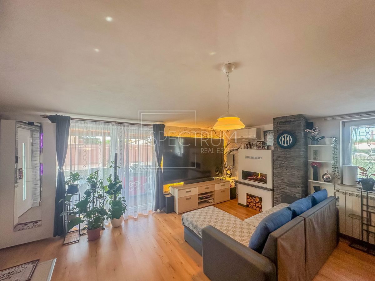 Stan u okolici Umaga ima ukupno 86,12 m2, nalazi se na drugom katu, udaljen je 5 min. (700m) od mora i od uređene plaže, 10 min. (4000m) udaljeni ste od centra grada Umaga. Stan se sastoji od kuhinje sa blagavaonicom, dnevnog boravka,
