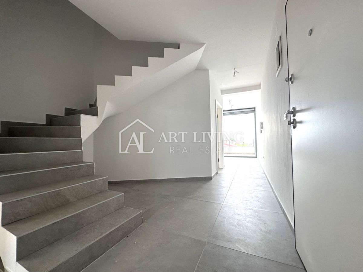 Prodaje se stan na 2 etaže površine 73,75 m2 na atraktivnoj lokaciji. Na prvom katu nalaze se dnevni boravak sa kuhinjom, ostava, WC i balkon, a na drugom katu ulazni hodnik, 2 spavaće sobe, kupaonica i loggia. Stanu pripada 1 park
