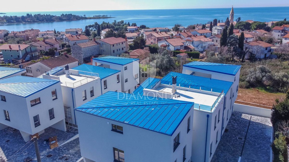 Na prodaju je suvremen i lijep stan u novogradnji smješten na atraktivnoj lokaciji, udaljen samo 300 metara od mora i plaža, što pruža jednostavan pristup, 3,5 km od Umaga, 2 km od golf igrališta te 9 km od graničnog prijelaza sa Slov