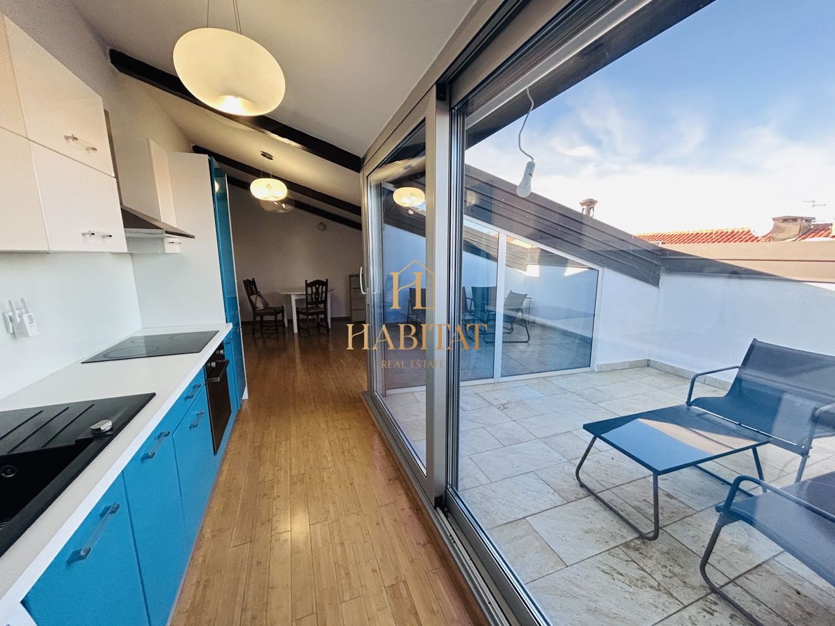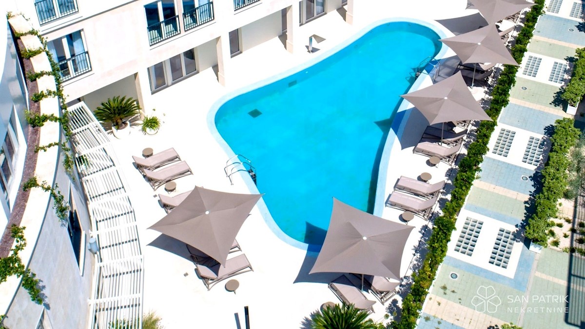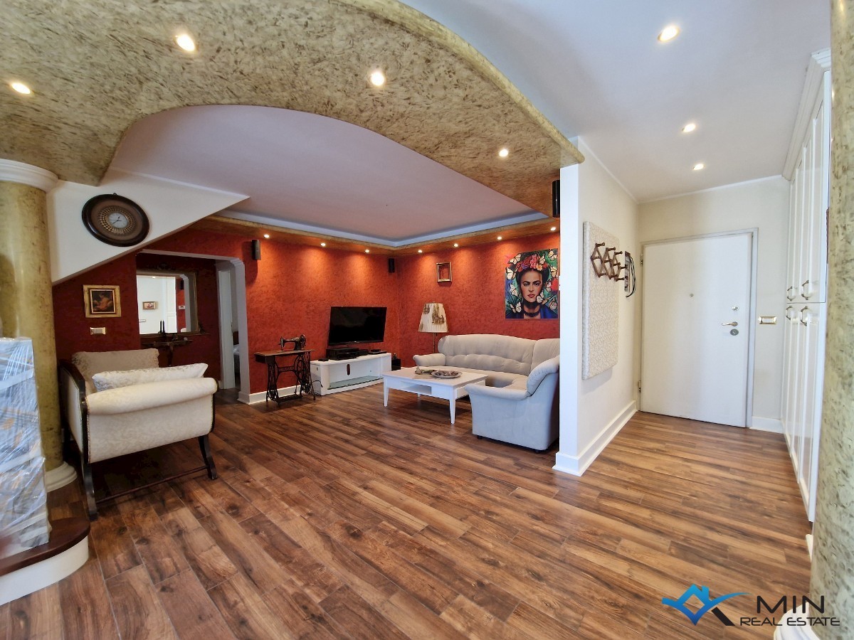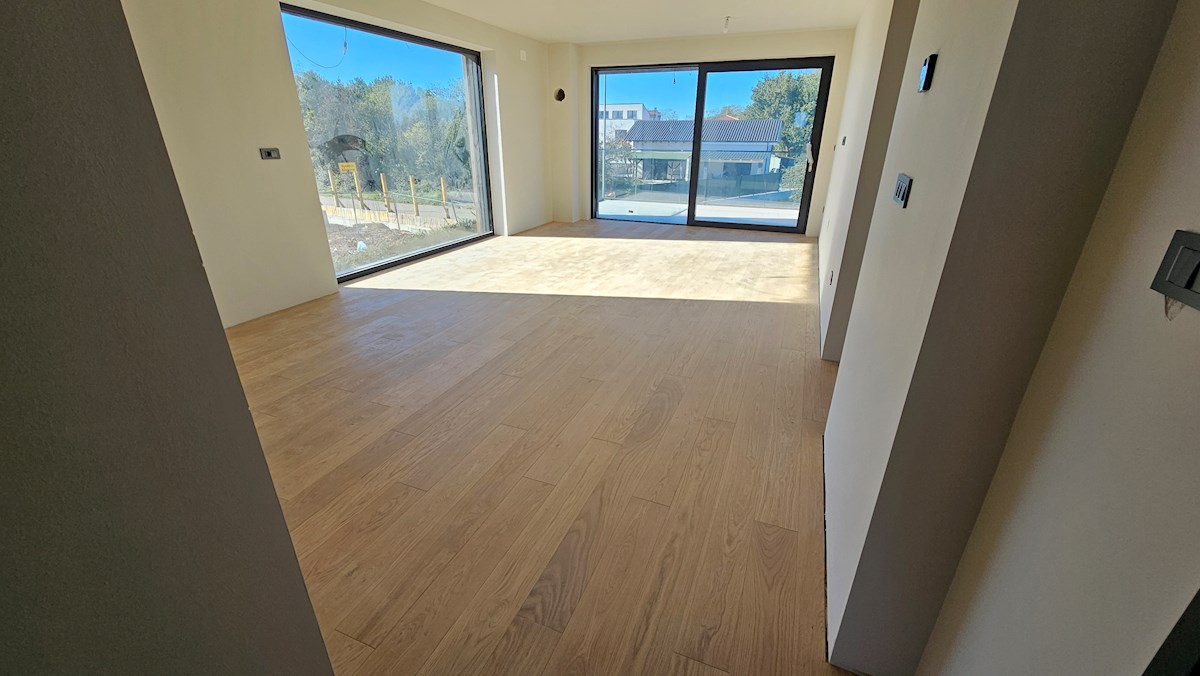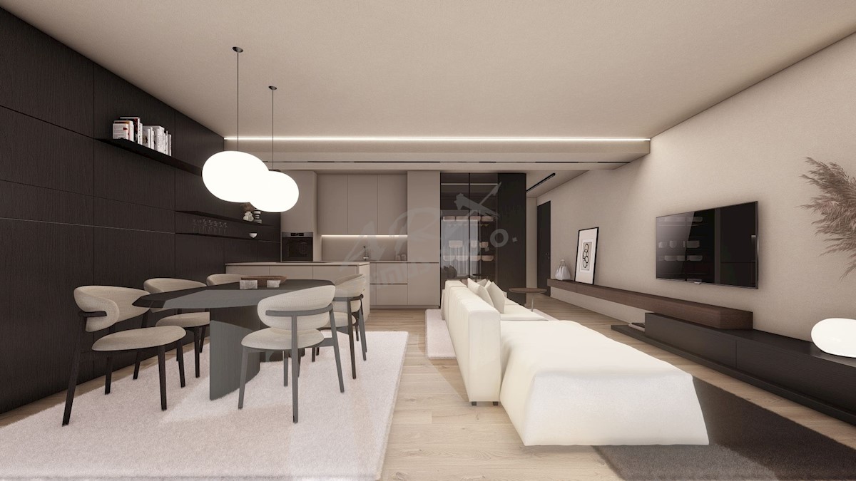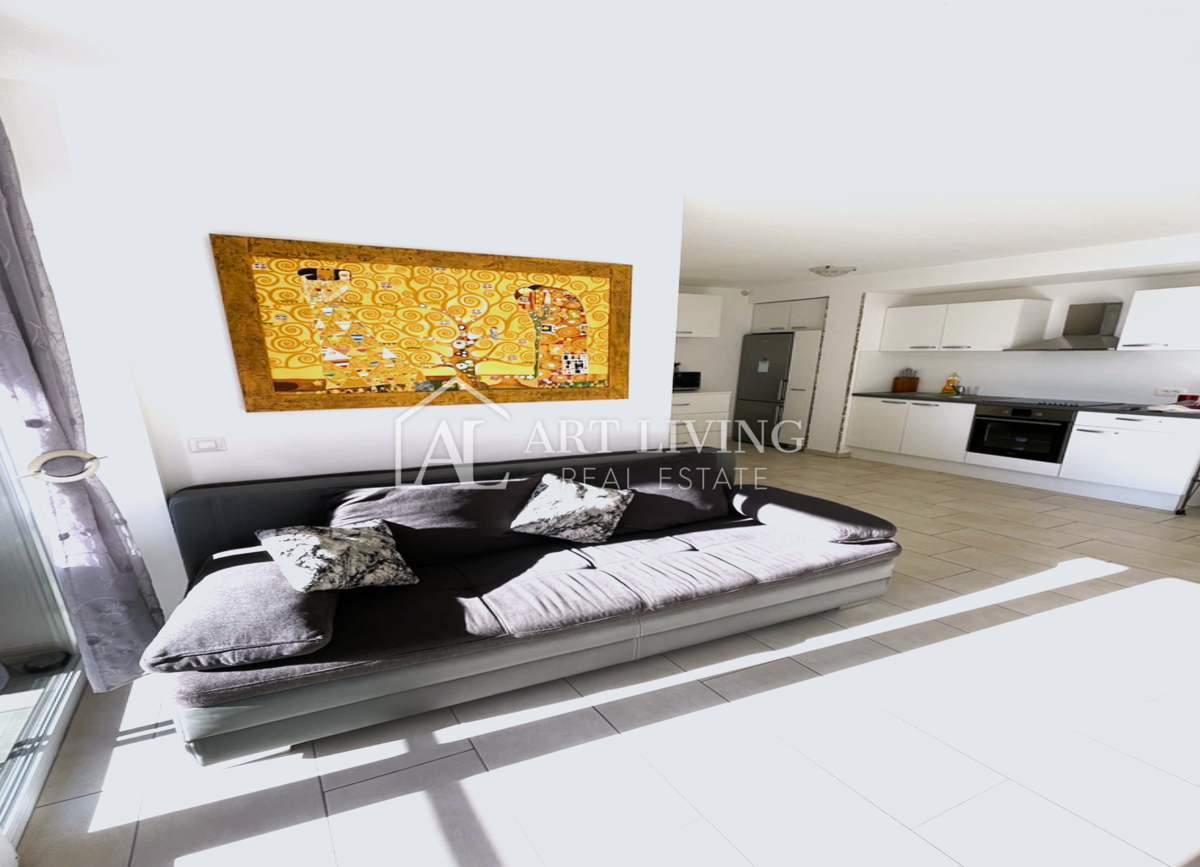 Stan u zgradi vrhunske kvalitete i modernog dizajna na odličnoj lokaciji u Bašaniji u blizini mora. Sastoji se od velikog dnevnog boravka sa kuhinjom i blagavaonom, 2 spavaće sobe, kupaonice i utilitya i velike natkrivene terase. Inst