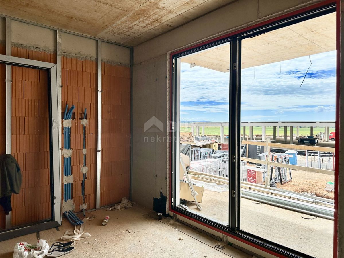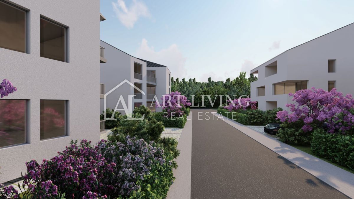 Novi stanovi u Zambratiji u blizini mora i plaža. Stan se sastoji od dnevnog boravka sa kuhinjom i blagavaonom, 2 spavaće sobe, loggia i kupaonica. Stanu pripada parkirno mjesto ispred zgrade. Instaliran klima uređaj za grijanje/hlađe