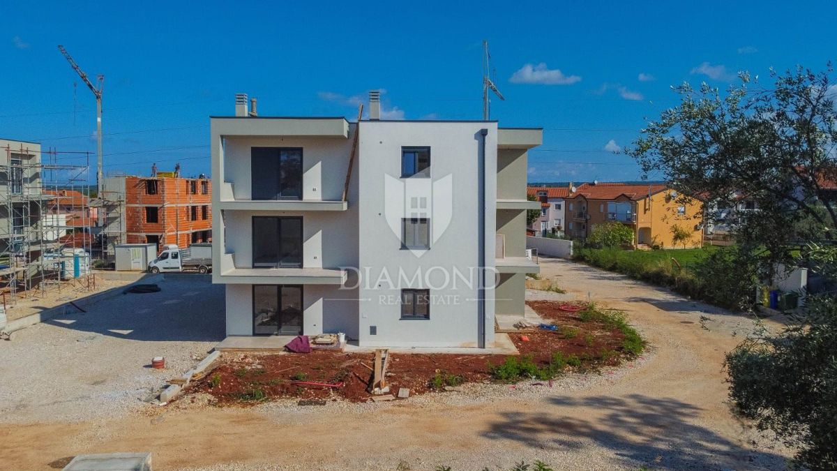 Iskoristite priliku ! Ovaj poseban stan u Zambratiji kod Umage od 77,26m2 se prodaje . BLIZINA MORA i djelomicni pogled na more sa dvije strane . Zgrada je moderna i neobicnog arhitektonskog nacrta , sto definitivno vrijedi pogledat
