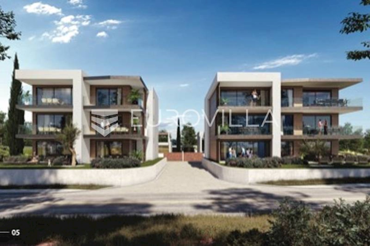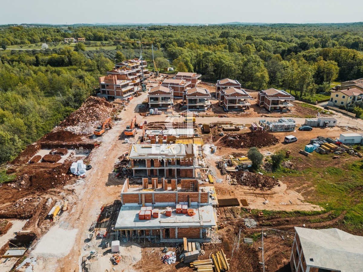 Umag, centar, stambena zgrada u izgradnji, ukupno 122 stana, 3 stubišta, 3 lifta, podzemna garaža i ostave, a stanovi su smješteni u prizemlju, prvom, drugom i trećem katu. Stanovi u prizemlju imaju vrt, a stanovi na trećem katu imaju