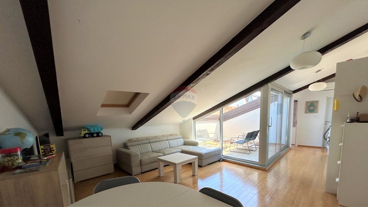 Stan u okolici Umaga ima ukupno 86,12 m2, nalazi se na drugom katu, udaljen je 5 min. (700m) od mora i od uređene plaže, 10 min. (4000m) udaljeni ste od centra grada Umaga. Stan se sastoji od kuhinje sa blagavaonicom, dnevnog boravka,