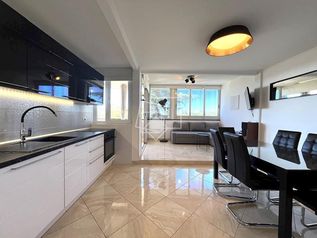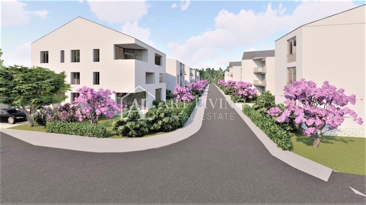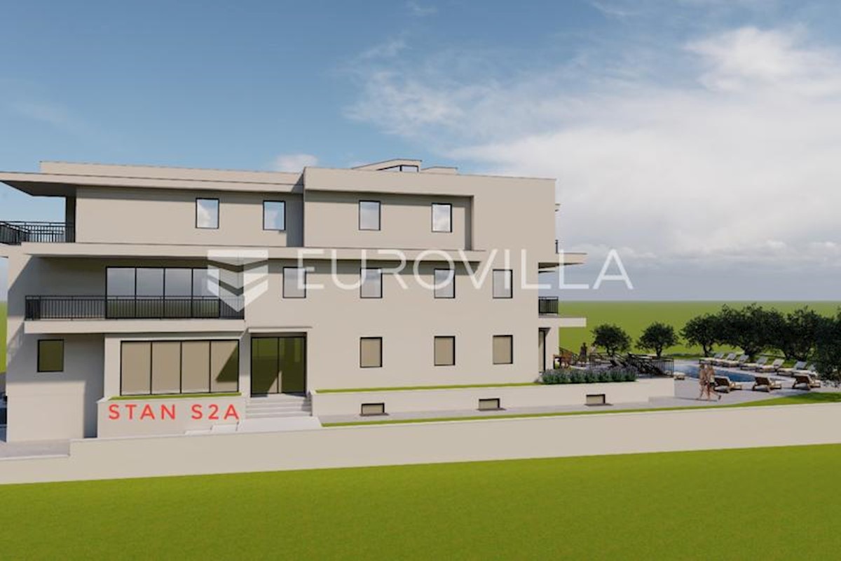 Novi stanovi u Zambratiji u blizini mora i plaža. Stan se sastoji od dnevnog boravka sa kuhinjom i blagavaonom, 2 spavaće sobe, loggia i kupaonica. Stanu pripada parkirno mjesto ispred zgrade. Instaliran klima uređaj za grijanje/hlađe
