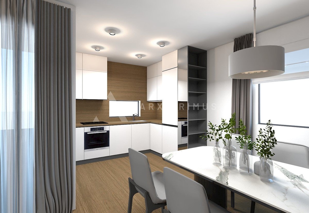 Novogradnja u Zambratiji, zgrada sa 6 stanova. Komforan stan s pogledom na more. Stan se sastoji od tri spavaće sobe, dnevnog boravka sa kuhinjom, predprostoroom te kupaonicom, WCom i nadkrivenom terasom sa pogledom na more. Ispred zgrade parkirno mjest