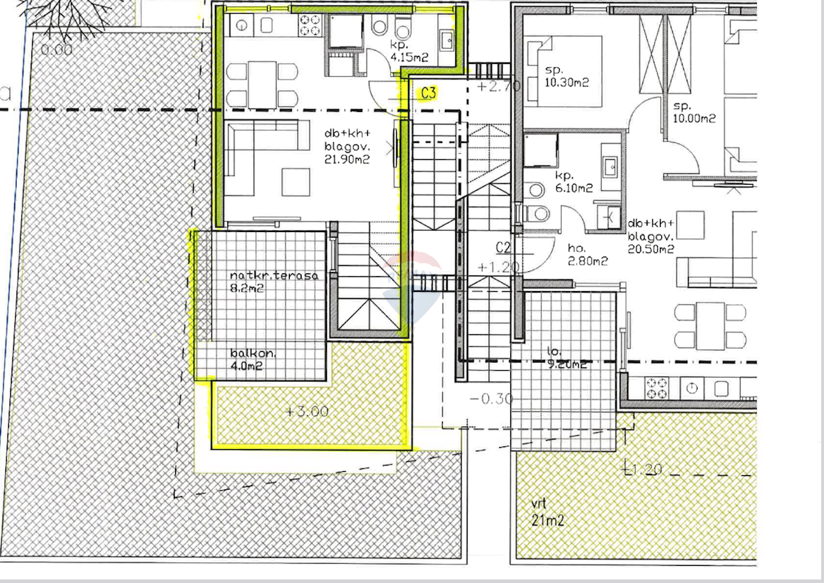 Prodaje se dvoetažni stan u okolici Umaga neto površine 61,20 m2. Smješten na prvom katu zgrade od ukupno četiri stana te je podijeljen na dve etaže koje su povezane unutarnjim stepenicama. Na prvom katu se nalazi kupaona, kuhinja s blagovaonicom i dnevn