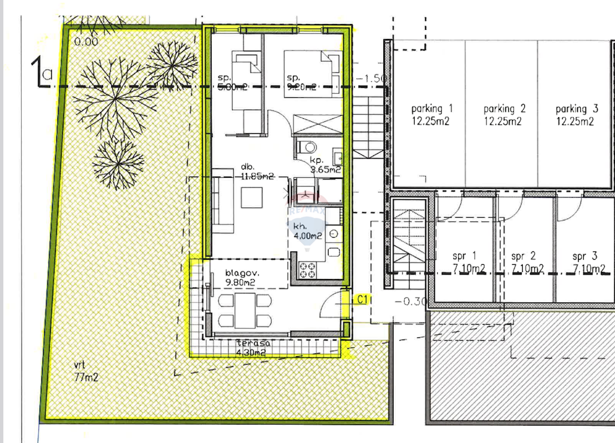 Prodaje se stan na atraktivnoj lokaciji udaljen 350 m od mora i uređenih plaža. Stan je smješten u prizemlju zgrade od ukupno četiri stana, te se sastoji se od ulaznog hodnika, kupaone, dvije spavaće sobe, kuhinje s blagovaonom, dnevnog boravka s izla