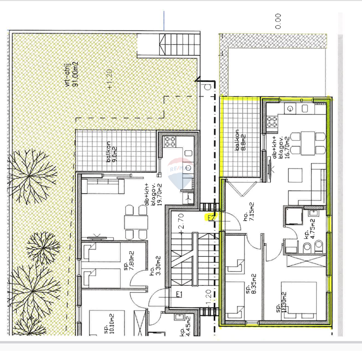 Prodaje se stan u okolici Umaga na mirnoj lokaciji. Stan je smješten na prvom katu manje zgrade te se sastoji od kupaone, dvije spavaće sobe, kuhinje s blagovaonom i dnevnog boravka s izlazom na terasu Stan ima neto korisnog prostora 48,25 m2 s natkriveno